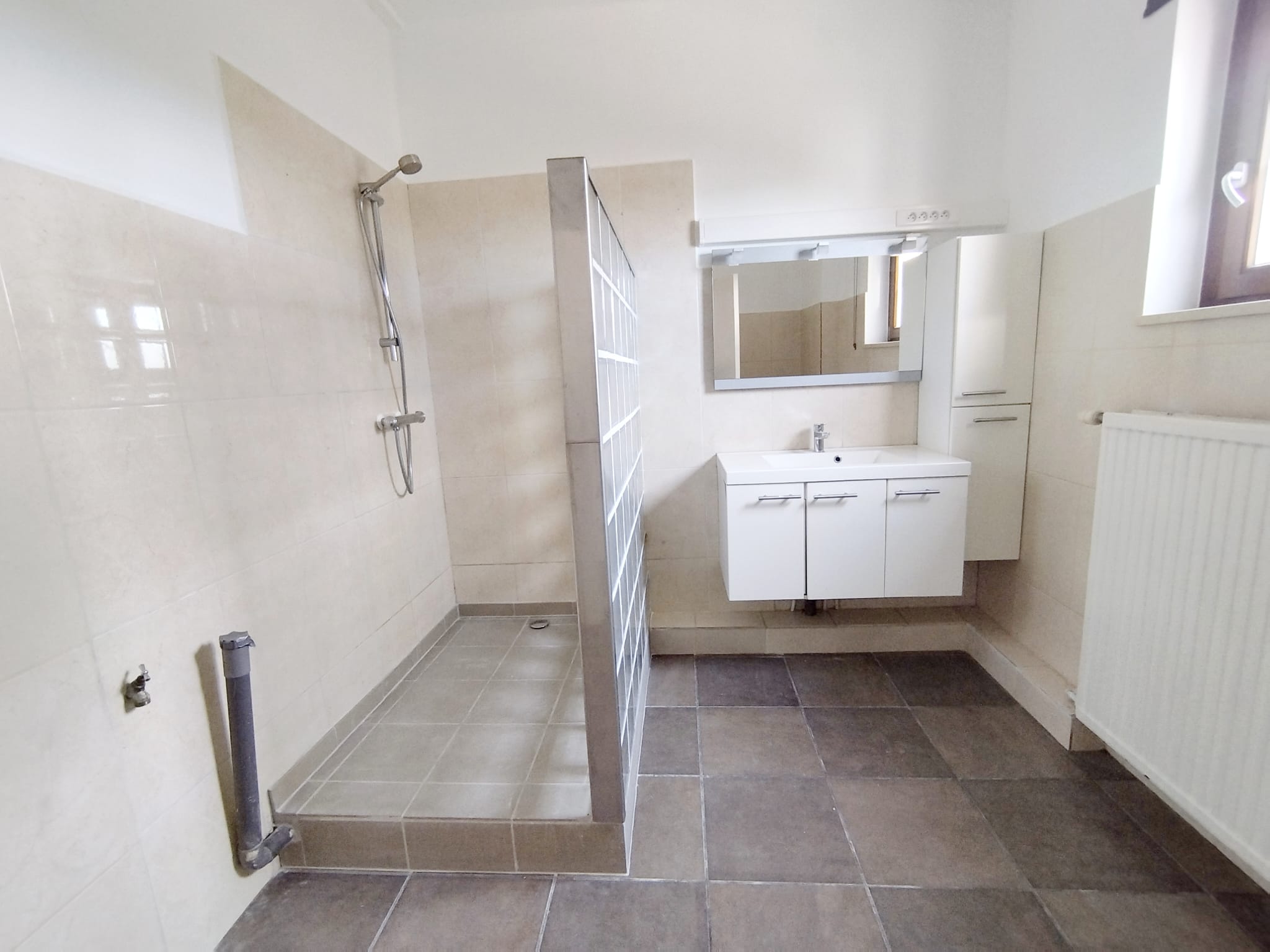 Situé au rez-de-chaussée, appartement 2 chambres de 70m². Il se compose d’un hall d’entrée avec vestiaire, living, cuisine équipée (évier, taque électrique neuve, hotte, lave-vaisselle, frigo, four à micro-ondes encastré), 2 chambres de taille moyenne (9 & 10,5m²), salle de douche et réserve. Petit coin extérieur accessible par accès latéral. 2 emplacements de parking extérieurs. PEB C. Loyer de 800€ eau comprise, avance de 70€ par mois pour l’électricité et 70€ pour le gaz. Bail de 3 ans. Idéal accès E40 & gare de Landen. Libre de suite.