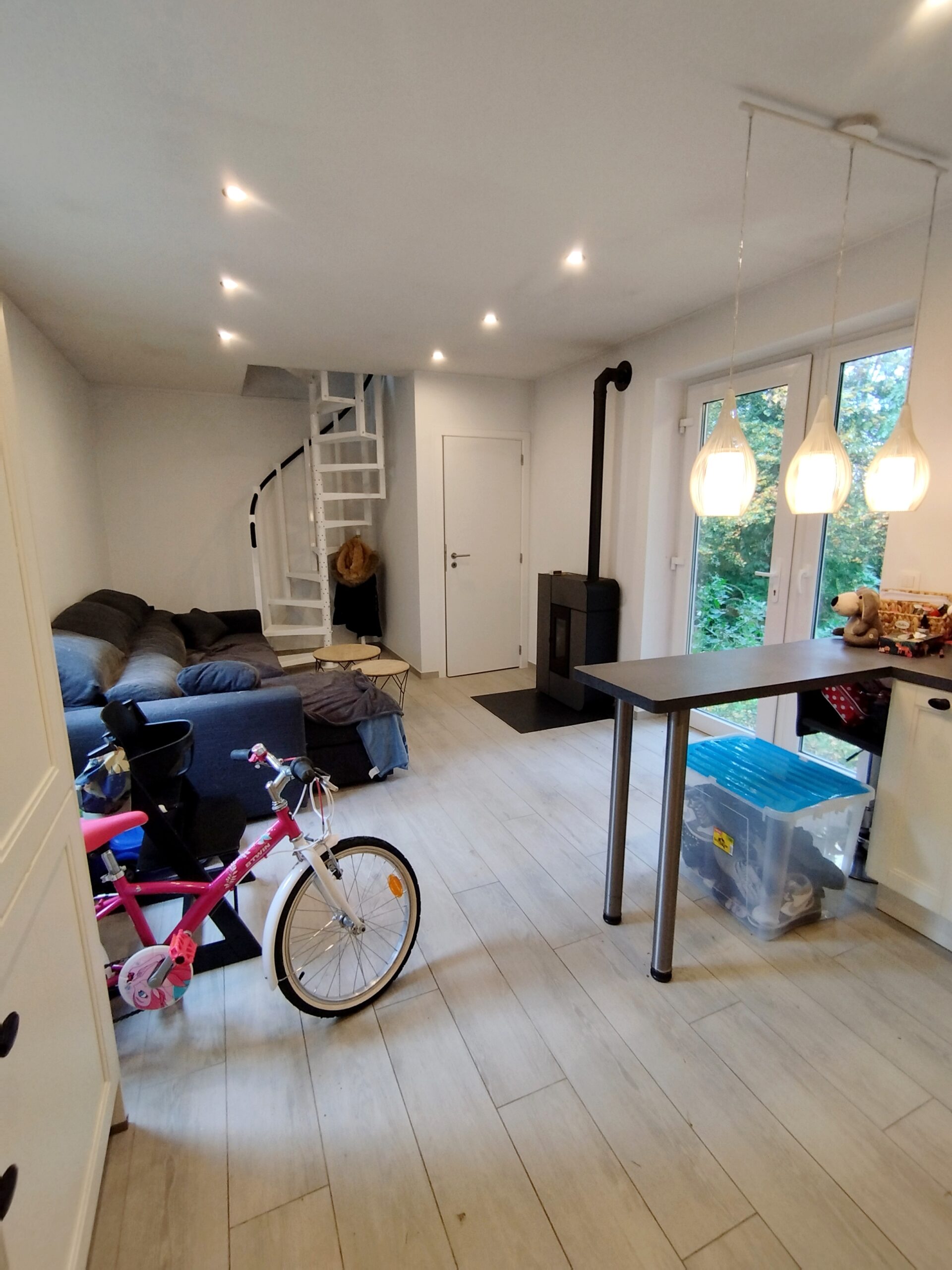 Cheminées présentes dans le living et la salle à manger, poêle à pellets dans le duplex, CC mazout de 2013. Hourdis à tous les étages (cave, étage et grenier). Electricité à remettre aux normes, double vitrages PVC. La maison doit être remise au goût du jour, le duplex est récent et tout à fait moderne. Très bonne construction! L’environnement est boisé, la terrasse surplombe le jardin et vous offre une vue très paisible et reposante! L’accès est privé par un petit chemin en pavés et desservant 3 habitations. Proche de toutes les commodités et du centre de Grez-Doiceau. Visites sur RDV. Faire offre à partir de 445000€.