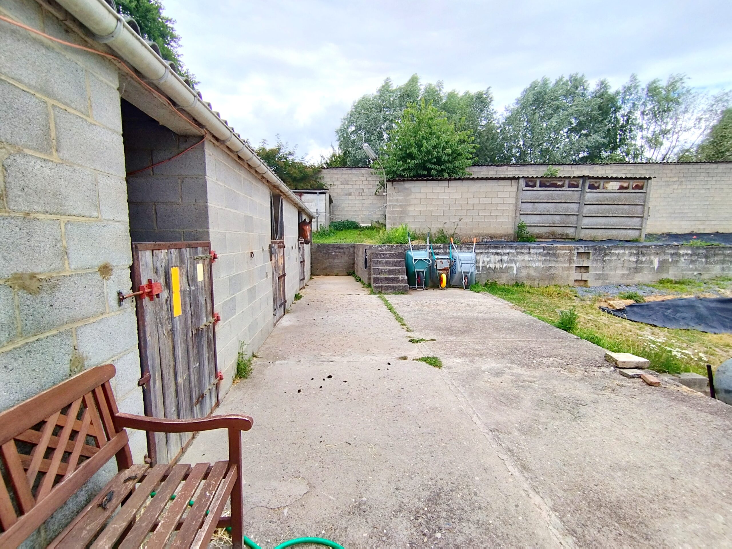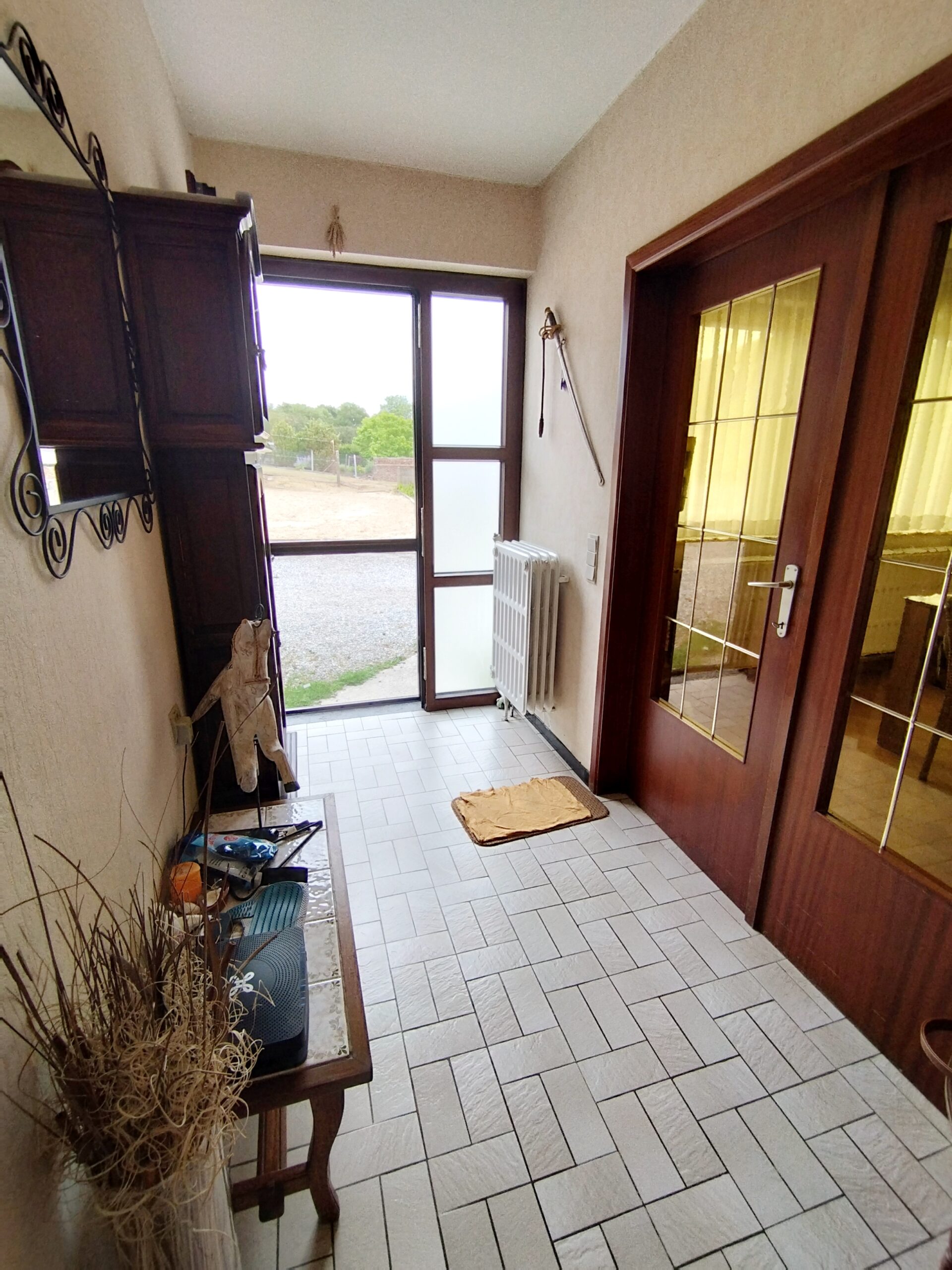 Bel’Immo vous présente ce plain-pied, idéalement situé à Bertrée à 2′ de l’E40 sur un terrain de +/- 9a 25ca. Celui-ci se compose d’un hall d’entrée avec toilette séparée, très beau living agrémenté d’un feu-ouvert et donnant sur le jardin avant, cuisine à remettre au goût du jour, hall de nuit, 2 chambres et une salle de douche entièrement rénovée. Il y a aussi un beau grenier de 70m² aménageable! Garage 1 voiture avec porte sectionnelle et nombreux emplacements extérieurs. Annexes, actuellement boxes, pouvant également être réaménagées suivant vos besoins. Chauffage central mazout WOLF, double vitrage PVC, ELECTRICITE CONFORME, toiture isolée. A2′ de l’E40, entre Bruxelles et Liège, 10′ de la gare de Landen. Le terrassement extérieur vient d’être entièrement refait. Bien tout confort à visiter au plus vite! Faire offre àpd 299000€
